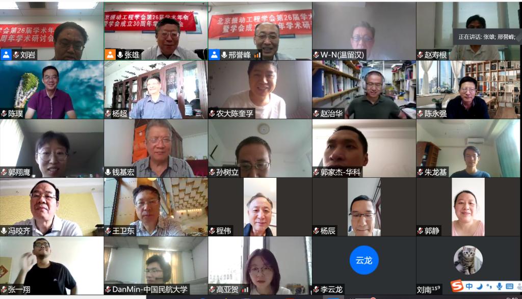 2020年8月29日,由北京振动工程学会主办,清华大学航天航空学院承办的第26届学术年会暨学会成立30周年学术研讨会成功举办。大会主席由学会理事长、北京航空航天大学邢誉峰教授和学会副理事长、清华大学张雄教授共同担任。由于疫情原因,本次年会以线上和线下相结合的方式召开,参会人数近百人,部分参会人员来自北京之外省份。线上采用的是腾讯会议,线下主会场设在北京航空航天大学365英国上市公司。