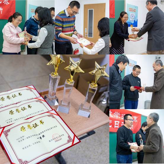 图10 2019年“立德树人卓越奖”获得者贾玉红老师为获得二等奖的3位青年教师:高振勋、郝宇清、宋磊颁奖。