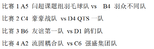 经过一轮一轮地比拼,流固耦合队、闫超课题组羽毛球队、鸽们队、QTS一队四支球队最终进入半决赛。