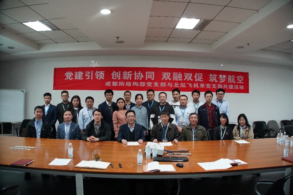 首日,飞机系党支部教师代表来到成都所,就提升基层党建工作和航空工程设计能力与成都所结构部党支部进行深度交流座谈。会上,成都所结构部甘学东书记就结构部的主要科研工作和党总支的组织形式及特色党建活动中体现的“精神上追求卓越,理论上高度统一,行动上充满激情,技术上不断钻研”进行了全面介绍,飞机系孙康文书记就飞机系支部的“党建与业务深度融合”及所有党员教师的研究方向进行了系统的说明,双方在大型结构增材制造、柔性体点阵结构等多个研究点进行了深入细致的交流。以此为契机,为将成都所结构部在承担国家重大型号研制方面的先进经验与飞机系在飞行器设计领域基础研究能力的优势相结合,发挥党建引领作用,双方签署了党支部共建协议(首个共建期三年),计划在联合人才培养、协同基础研究、共同技术攻关、成果转化应用等方面形成高效合作机制及良性互动局面,真正实现“党建引领、创新协同、双融双促、筑梦航空”。会后,双方互赠了航空模型以示敬意。