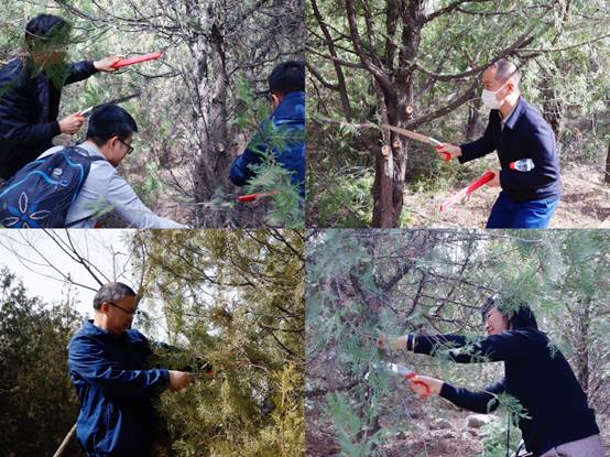 尽管当天略有风沙,也丝毫阻挡不了师生们的热情。大家认真地为每一棵树修剪侧枝、清理树干。在大家共同努力与默契配合下,原本杂乱生长的林木变得挺拔。相信经过大家的修剪与抚育,树木会更加茁壮挺拔的生长。