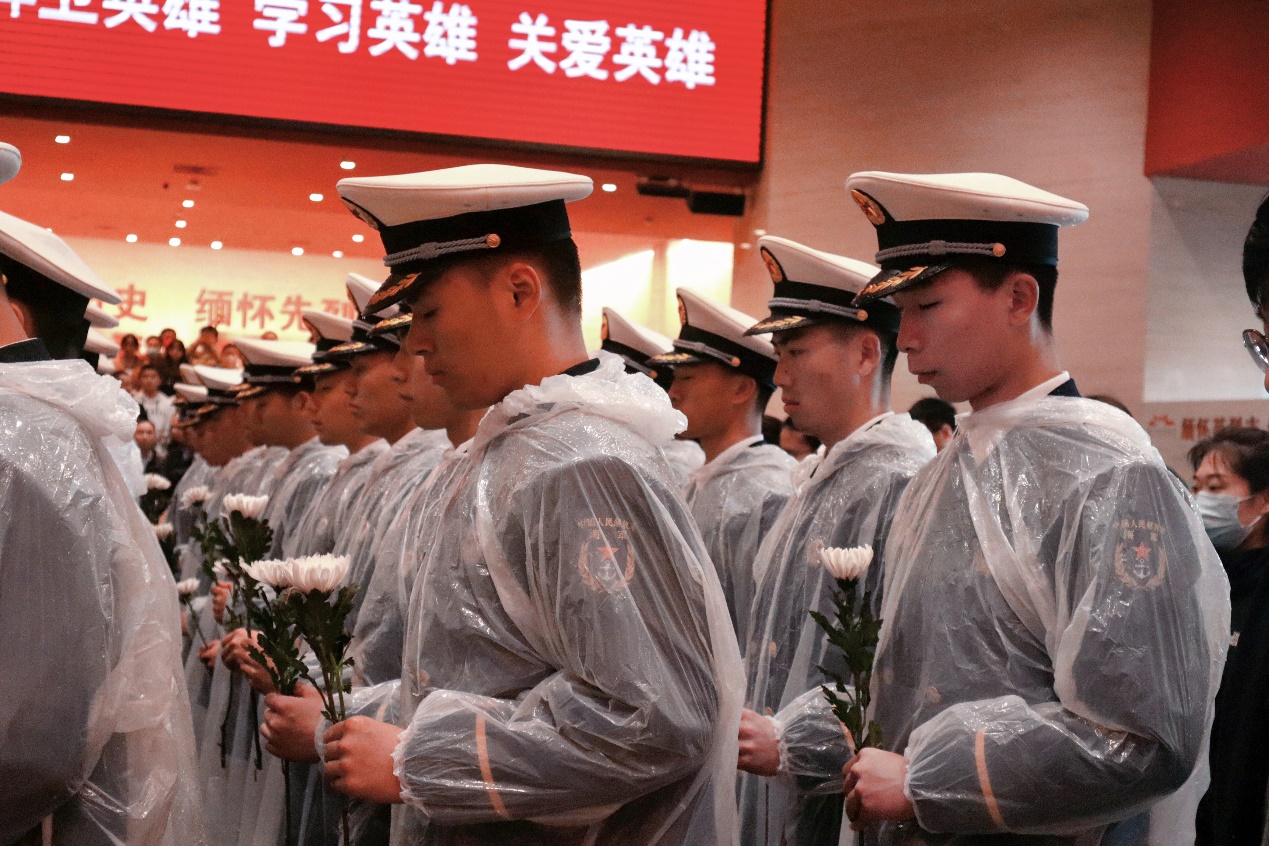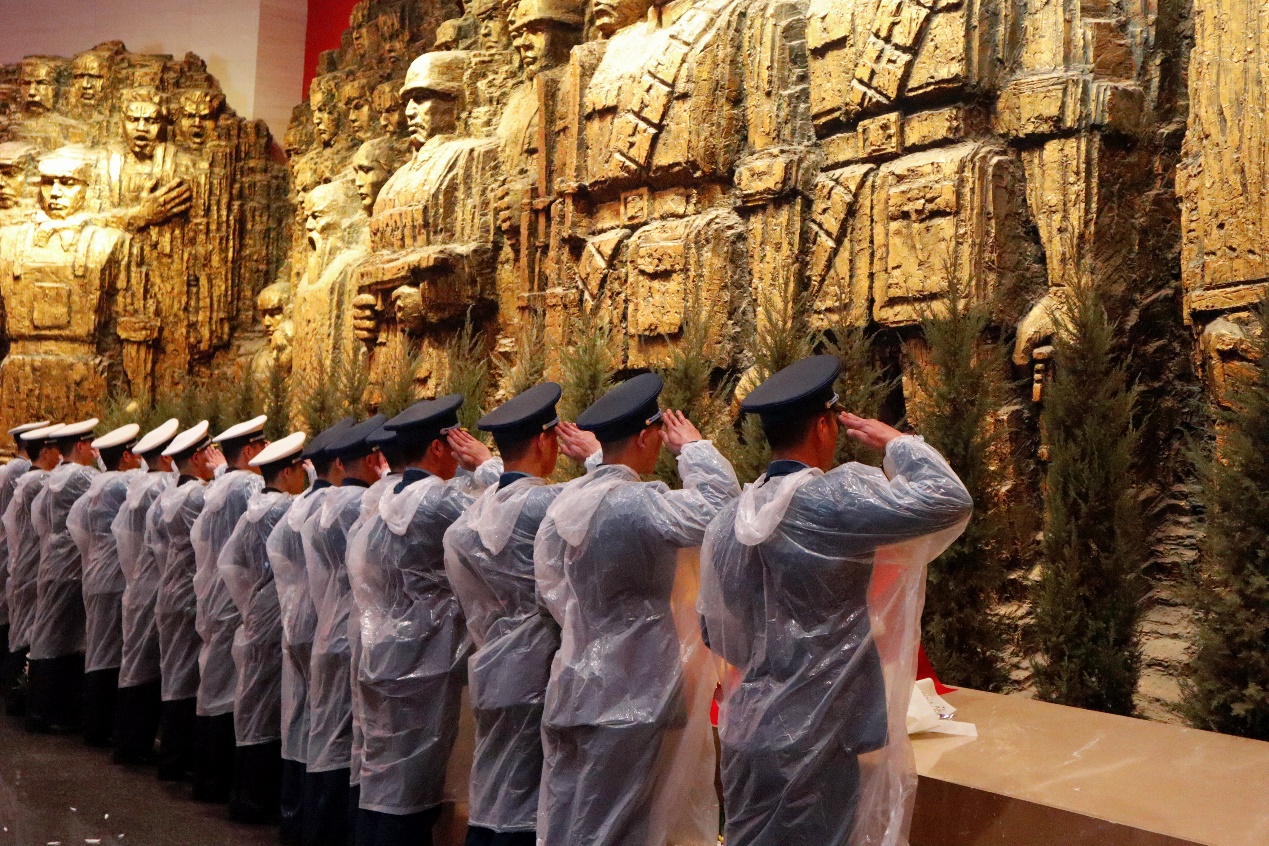 面对抗日战争英烈墙,全体“双学籍”飞行学员肃穆而立,满怀敬仰地注视着面前的雕像,前辈们为争取民族独立和人民解放英勇捐躯,在这里用鲜血、青春和生命铸起一座座光华四射的丰碑。清明节将至,“双学籍”飞行学员班向革命先烈默哀并献上花束,以此寄托哀情,缅怀英雄。