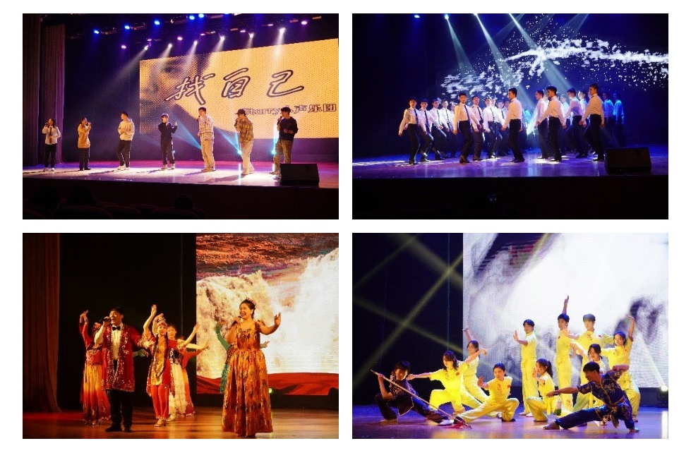 晚会节目形式多样、精彩纷呈。以京剧《天女散花》拉开序幕,阿卡贝拉清唱社的Starry乐队带来歌曲《找自己》,踢踏舞团的表演《舞踏龙腾》展现出独特魅力,田尧浩一首《动物世界》引起大家的共鸣,多民族舞蹈《石榴花开》则展现了各族人民团结友爱的温馨场景,Ace魔术社的《今夜奇迹》引人惊叹,凌若楠的《阿刁》发人深思,由高鸿宇和闫普阳带来的相声表演《反正话》引得观众捧腹大笑,武术协会的表演行云流水,歌曲《我对自己开了一枪》由习宴澳明和李振演绎,揭示了世事的无常,歌颂了自强不息的奋斗精神。6为学院同学带来的乐器联奏,展现了不同乐器的迥异表现风格,杨一夫、钱墨洋演绎的歌曲《修炼爱情》引起了现场同学们的共同合唱,而胡杨婧的舞蹈《滇南映少》展现了人美舞美的绝美滇南。