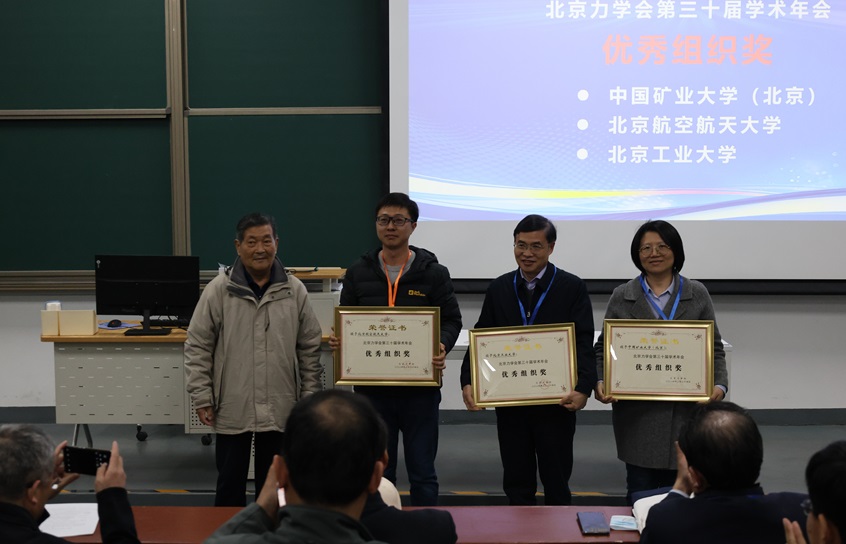 在闭幕式上,北京力学会荣誉理事长姚振汉教授主持并宣读获奖人员名单,学会荣誉副理事长隋允康教授介绍了北京力学会2024年工作月历准备情况。本届年会新设立了优秀组织奖,中国矿业大学(北京)、北京航空航天大学和北京工业大学获评该奖。最后,北京力学会副理事长王晋军教授致闭幕辞,北京力学会第30届学术年会圆满落幕。