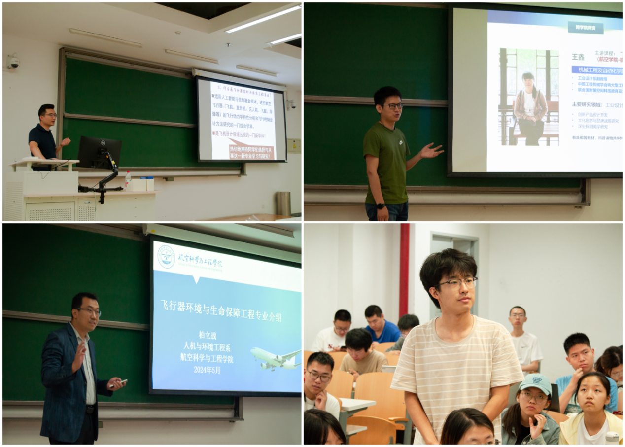 为进一步帮助同学们了解学院专业情况,助力专业选择。5月21日、23日,学院邀请各专业、各系所的教师代表,为同学们带来“引航讲堂”系列讲座。学院副院长罗明强向同学们整体介绍了学院培养方案,阐述了学院教学基本理念和学院特色;万志强、王磊、高振勋、于洋、乐挺、郭克信、柏立战等多位老师分别介绍了飞行器设计与工程、工程力学、飞行器控制与信息工程、智能飞行器设计、飞行器环境与生命保障工程等专业的特色与研究方向。同学们认真聆听,积极提问,对航空学院有了更深入的了解。