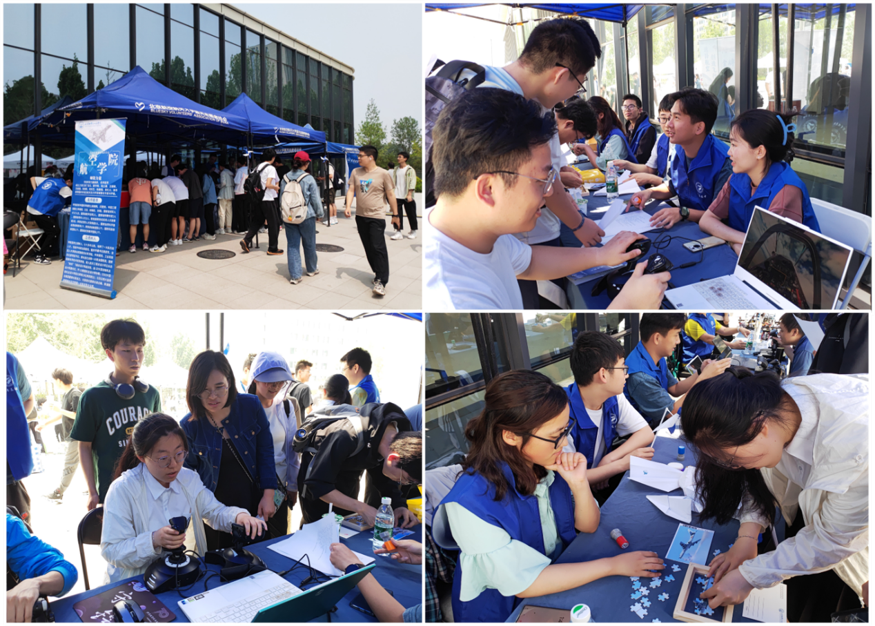 5月22日中午,航空学院在沙河校区西区食堂南侧广场举办了以“逐梦航空”为主题的外场活动,通过模拟飞行、叩问苍穹、飞行梦想家、拼图挑战四个游戏,展现航空学院特色。丰富的活动内容、精美的周边文创,吸引了众多师生积极参与。
