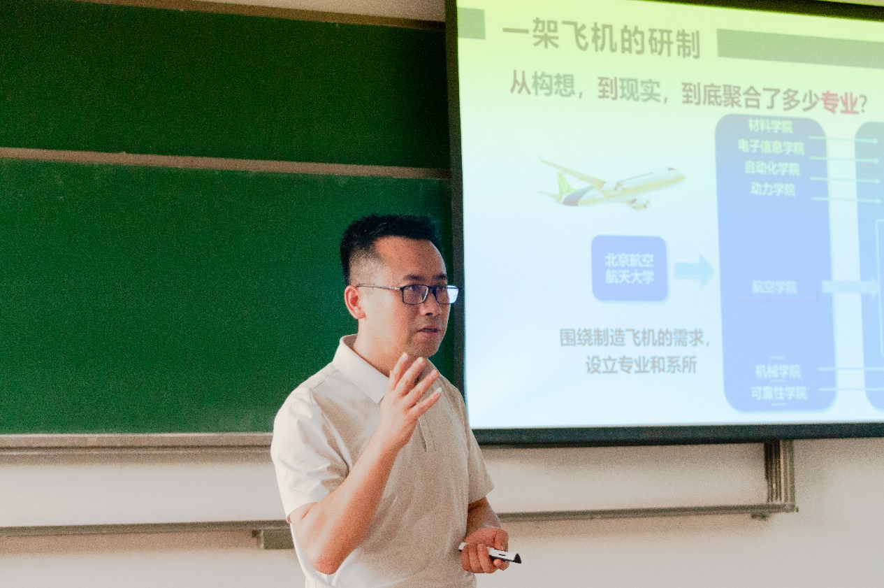 5月22日晚,于沙河校区J0-002举办了学院学生培养情况介绍及总师讲座活动。学院党委副书记梁伟涛与中国商飞北研中心专家张驰主讲,活动由梁伟涛主持,来自各书院、学院的350余名同学参与活动。梁伟涛老师介绍了学院历史、专业设置、学院创新人才特区等内容,展示了学院本科生在学习科研、社会实践、升学就业等方面的成果,鼓励同学们志在蓝天、心向航空。张驰总师以“民机梦 大飞机梦”为主题,讲述从选择回国加入中国商飞北研投身祖国大飞机事业,到参与多个国产客机前期论证工作的故事,激励北航青年学子大胆创新、不惧失败,积极投身大飞机事业和航空事业。讲座上,同学们踊跃提问,既包括专业设置、培养模式等学业上的疑惑,又有对客机制造的学术问题等,主讲老师一一解答,现场气氛活跃。
