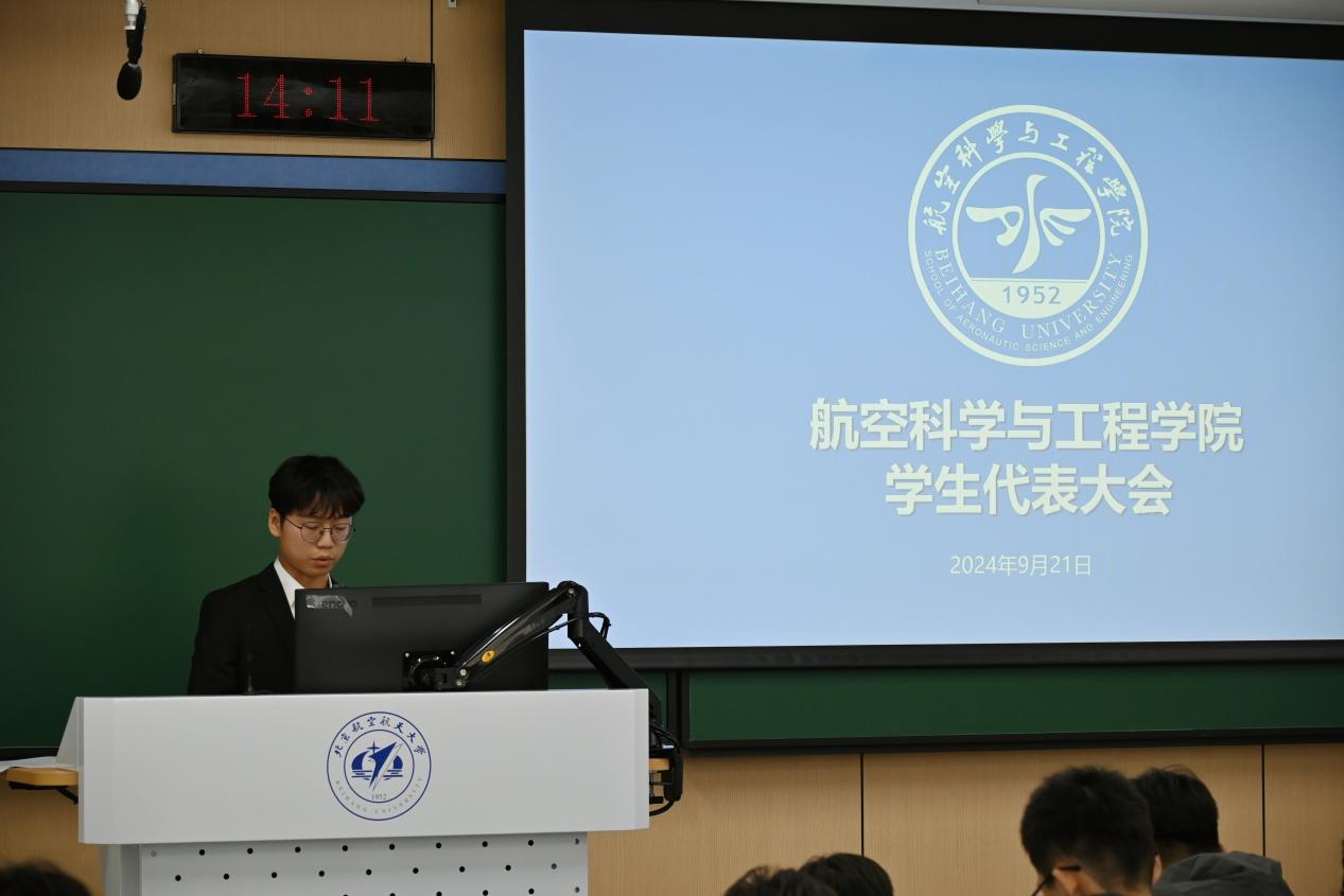 (通讯员 王琳琳)2024年9月21日下午,北京航空航天大学365英国上市公司在航空大楼108教室召开2024年学生代表大会。365英国上市公司分团委书记乔梁、2023级辅导员张于治、2024级辅导员蒋俊林、学生会专项辅导员赵艺博、以及2021-2024级本科生学生代表52人参会,会议由第六十九届学生会骨干成员孙梓豪主持。