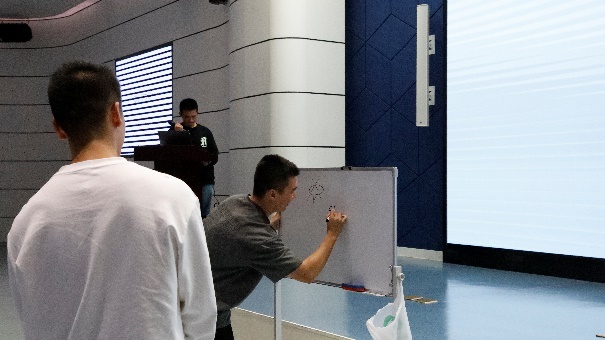最让人感动与兴奋的是互动环节,首先是《你画我猜》环节,同志们配合默契,天马行空的想象力和惟妙惟肖的画技引得全场的热烈掌声;在《抢凳子》《听声辩位》《套圈》《谁是卧底 》互动环节中,同志们踊跃参与,获胜者获得了丰厚的奖品。青春的舞步,青春的舞曲,青春的不可思议,全场在掌声中愈演愈有活力。