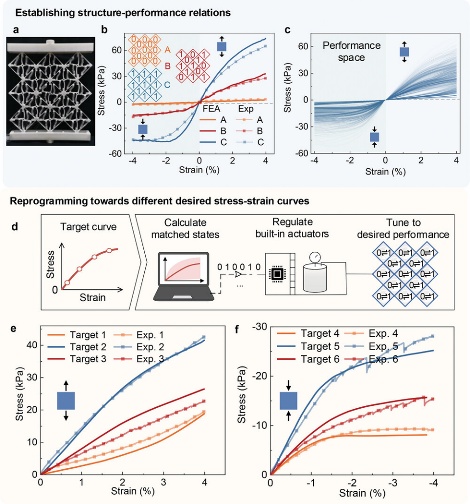 图1. 可以根据目标应力-应变曲线自动重编程的力学超材料