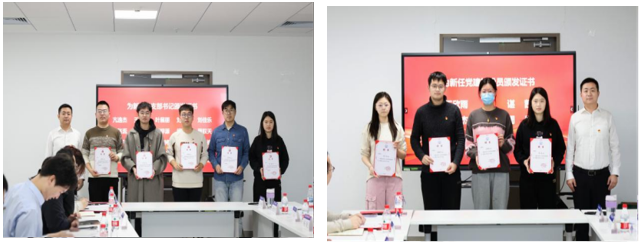 随后,学院党委副书记梁伟涛为离任学生党支部书记及党建辅导员颁发荣誉证书,肯定了他们在任职期间所取得的成绩,感谢他们为学生党建工作的辛勤付出。为新任学生党支部书记及党建辅导员颁发证书,鼓励他们接过接力棒、做好领头雁,为学院学生党建高质量发展贡献力量。通过这种“仪式感”让支书心底的“荣誉感”提起来、“责任感”强起来,让先锋模范作用的发挥更加自觉、更加充分。