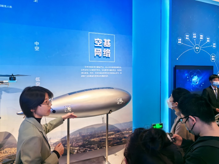 在展出的百余件展品中,由北京航空航天大学研制的“长航时高空平台系统”格外吸引支部成员的关注。该平台作为人类开发和利用临近空间的重要载体,可携带公专网通信基站和自组网设备,为人口稀少地区提供广域无线通信覆盖和通信中继服务,是未来6G天空地一体化通信系统的重要搭载平台。