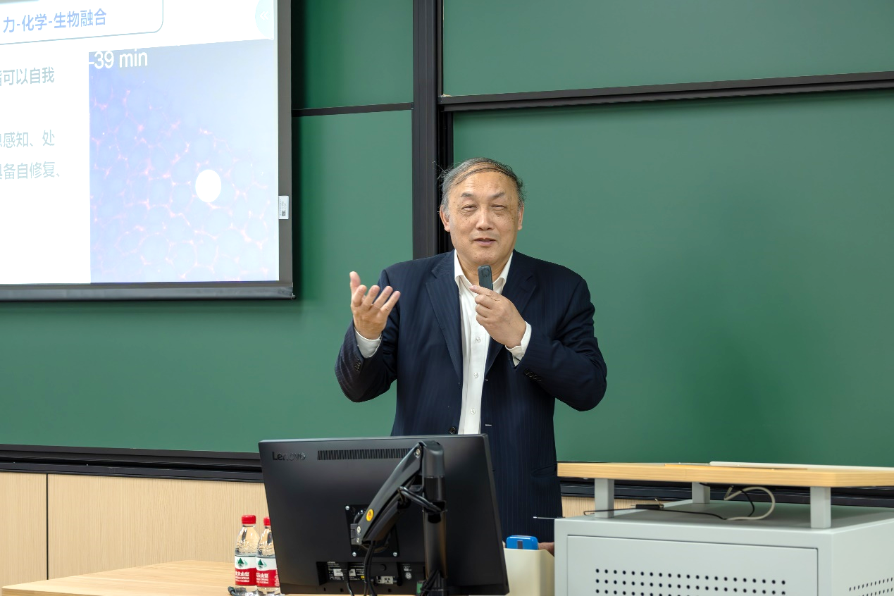 北航副校长吴江浩教授首先致辞,代表学校对杨卫院士的到来表示热烈欢迎。他高度评价了杨卫院士在固体力学及交叉学科领域的卓越贡献,鼓励北航学子珍惜此次与顶尖科学家面对面交流的宝贵机会,以科学家为榜样,励志空天报国,勇攀科技高峰。随后,王晋军教授介绍了杨卫院士的研究方向和主要学术成就,特别是在交叉力学(X-Mechanics)领域的开创性工作及在智柔体、机器人等前沿方向的重要影响。