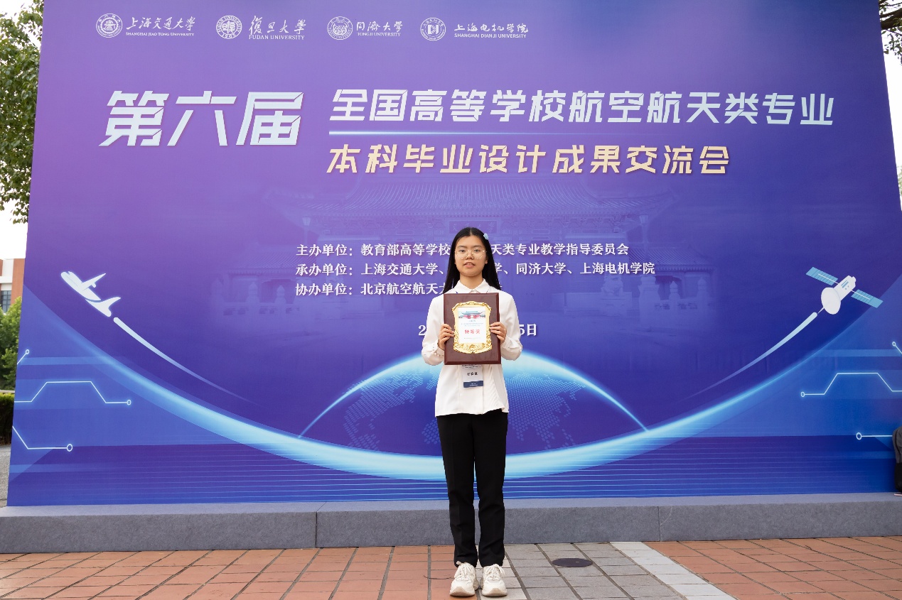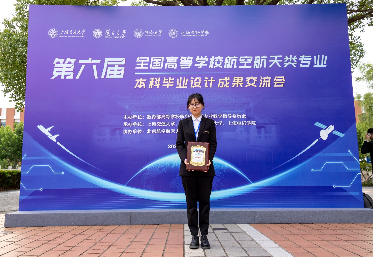 (通讯员:张岱林、郭金)5月24日,第六届全国高校航空航天类专业本科毕业设计成果交流会在上海交通大学顺利举行,来自清华大学、上海交通大学、同济大学、北京理工大学、西北工业大学等全国40余所高校的350余项航空航天类专业本科毕业设计(论文)参与交流评比。我校共选派包括1项团队毕业设计在内的4项毕业设计参加交流,最终获得2项特等奖、2项一等奖的优异成绩。