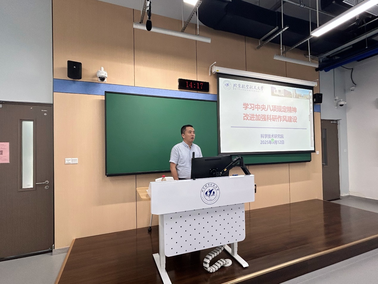 科研院党支部书记蒋崇文作“学习中央八项规定精神,改进加强科研作风建设”主题报告,通过剖析多起违反中央八项规定精神的典型案例,揭示其危害性与严重后果,告诫党员干部要以案为鉴、自省自律。