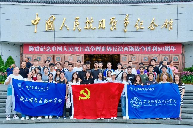 ( 通讯员 党世豪 摄影 王佳惠 张佳慧)2025年是中国人民抗日战争暨世界反法西斯战争胜利80周年。为铭记历史、缅怀先烈、珍爱和平、开创未来,进一步锤炼党员党性,厚植爱国情怀,9月13日,北航航空学院智能无人机学生党支部联合航空学院先进飞行器设计研究学生党支部、机械学院材料加工与控制系学生第一党支部、机械学院飞行器制造工程系学生第二党支部开展爱国主义教育活动,共同走进卢沟桥、宛平城与中国人民抗日战争纪念馆参观学习,在历史现场重温烽火岁月,感悟红色精神。本次活动受到北京航空航天大学党建创新基金和航空学院学生党建基金支持。