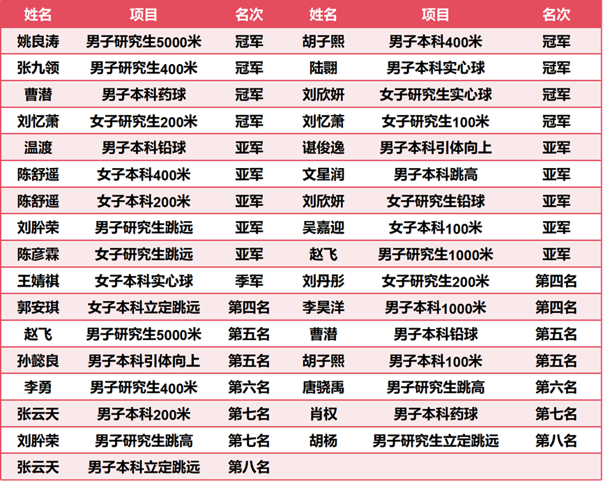 在本届运动会中,航空学子斗志昂扬、奋勇争先。本科生与研究生运动员共夺得金牌9枚、银牌10枚、铜牌5枚,并取得本科生团体总分第三名、研究生团体总分第四名的优异成绩。