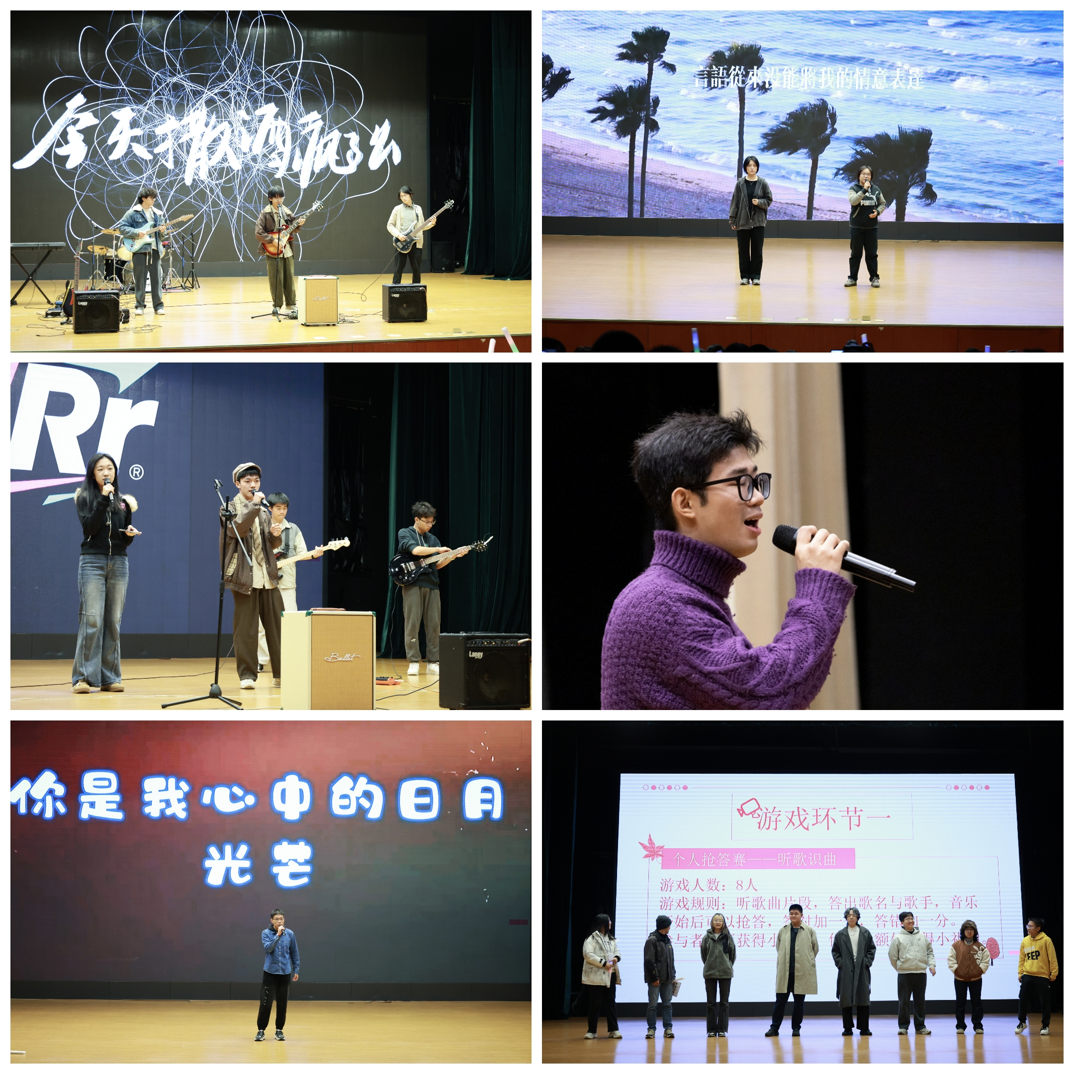 第二幕“巡航·音浪共振”中,王紫婧、武小奇、张雪芮、杜雨欣带来《Forever Young》,舞动青春活力;郭金垒演唱《等你下课》,唤起校园回忆;习宴澳明与周如仙带来《传奇》,声线交织出动人情感;星月口琴社的《尘星》旋律悠扬,刘星涵以《Dance Monkey》收尾,全场随节奏摇摆。紧接着的“歌曲倒放挑战”组队抢答赛成为当晚最受瞩目的环节。三、四两组在比赛中一度战成平手,选手们即兴展示才艺角逐胜负,歌声与笑声交织,掀起全场最热烈的欢呼。