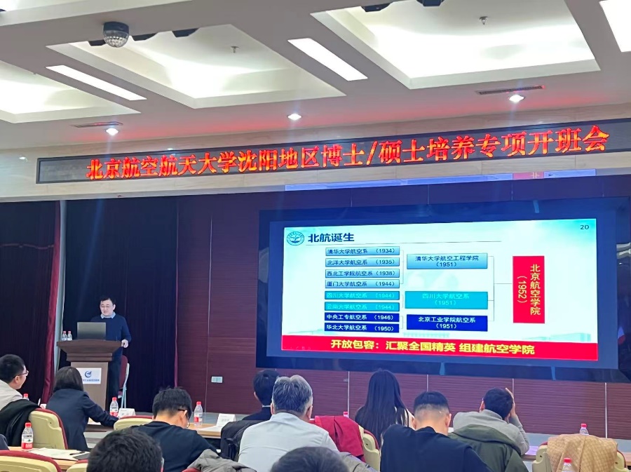 沈阳飞机设计研究所人才中心主任郑航在致辞中指出,北航与沈飞在航空科研、人才培养等领域有着深厚渊源和良好合作基础。本次专项博士、同等学力硕士培养工作的启动,是双方携手落实“产学研融合育人”新模式的重要举措,将为国家航空工业发展注入新的创新动能。