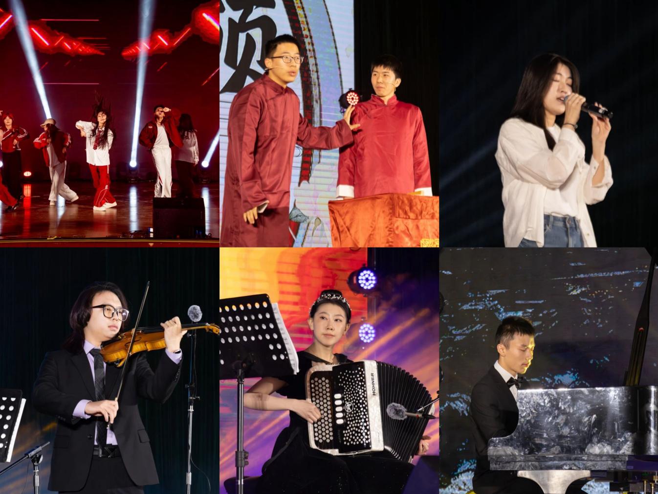 第三篇章“星河滚烫·志之所成”聚焦青春的热血与志向。全日制舞团以高燃齐舞《Brought the Heat Back》展示力量与默契;高鸿宇、黄翀的相声《大话牛顿》巧妙融合力学知识,妙趣横生;刘星涵的歌曲《也许明天》充满力量;随后,小提琴《新疆之春》、手风琴《草原上升起不落的太阳》与钢琴《黄河颂》的乐器联奏,带领观众领略了祖国山河的壮美画卷。