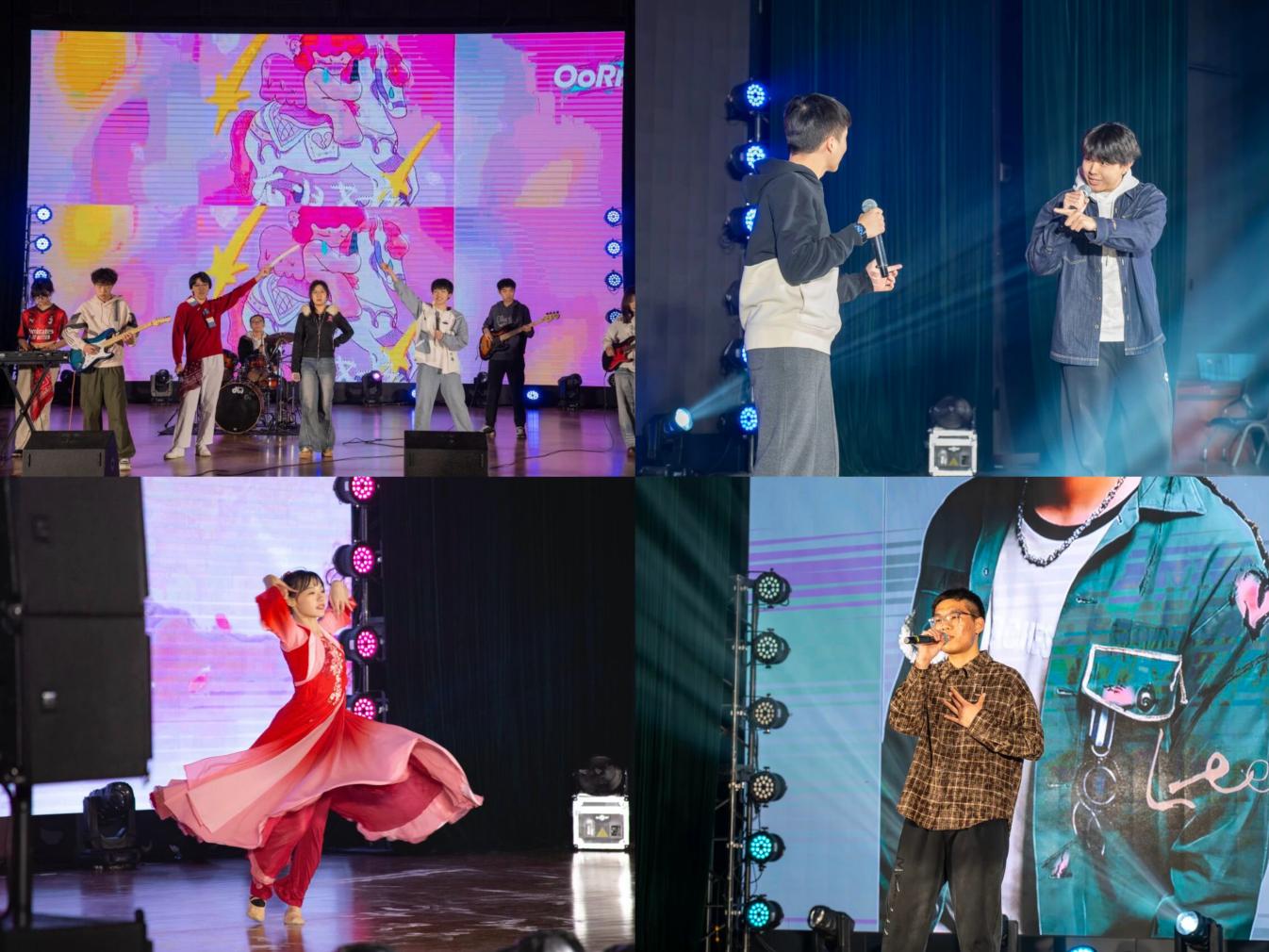 第二篇章“星辉汇聚·行之所往”由OoRr乐队的《不归女孩》《你要跳舞吗》引爆摇滚热浪,冯楚皓、杨懿方的歌曲改编《黑色柳丁》带来耳目一新的音乐体验,汪玥彤的古典舞《南风》与郄啸涵的《花田错》则用柔美舞姿与深情演唱诠释了传统与现代的融合之美。期间穿插的幸运抽奖,不断将现场气氛推向高潮。