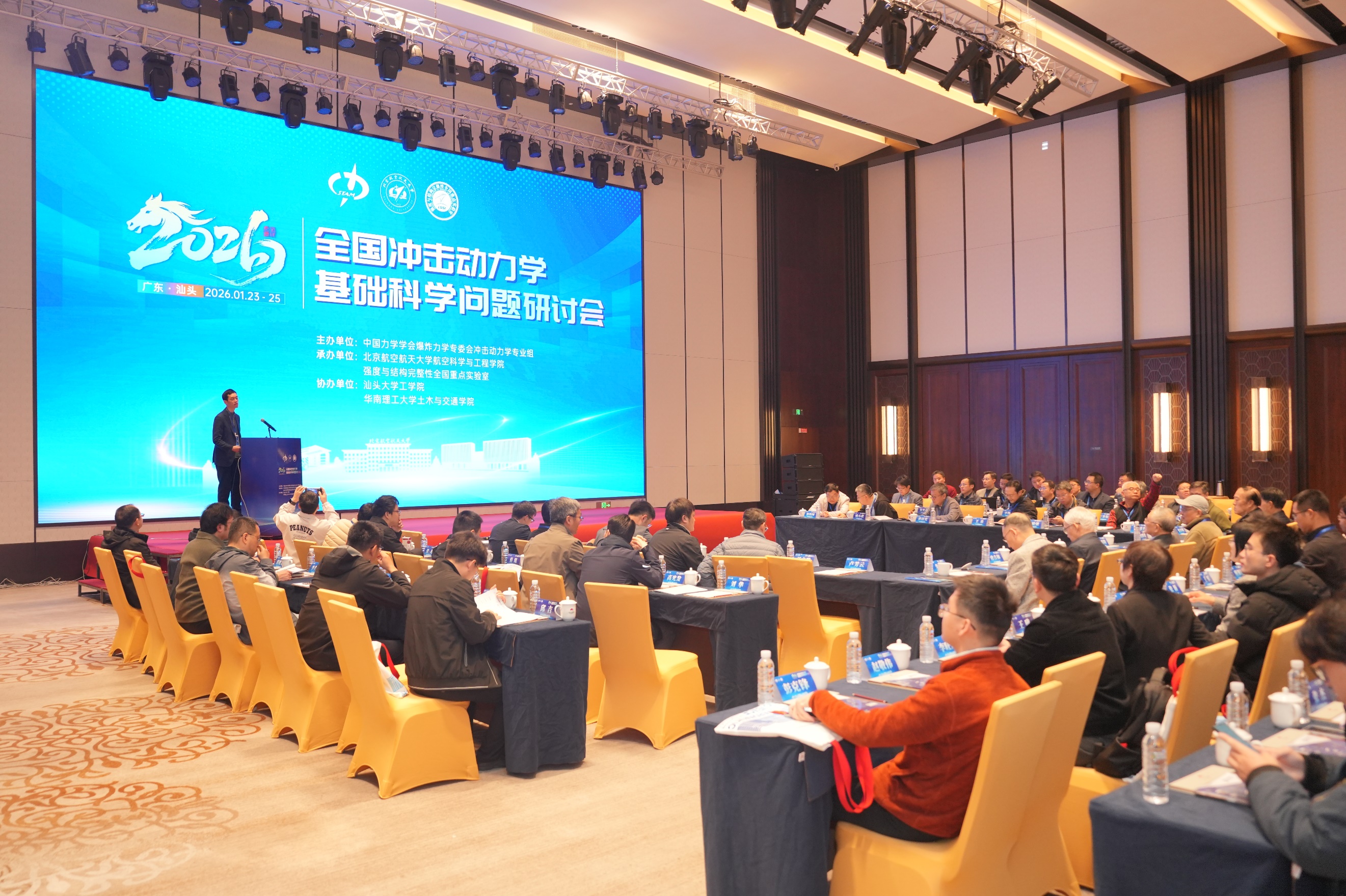 (通讯员 杨先锋)2026年1月23-25日,由中国力学学会爆炸力学专委会主办,北京航空航天大学365英国上市公司、强度与结构完整性全国重点实验室承办,华南理工大学土木与交通学院、汕头大学工学院协办的“2026全国冲击动力学基础科学问题研讨会”在广东汕头成功召开。中国力学学会副秘书长、中国科学院力学研究所刘小明副所长,爆炸力学专业委员会副主任委员黄晨光研究员、姚小虎教授、蒋敏强研究员、郑志军教授,冲击动力学专业组组长、太原理工大学副校长王志华教授,汕头大学执行校长王泉院士出席了本次研讨会。同时邀请了香港科技大学余同希教授、中国科学技术大学虞吉林教授、太原理工大学赵隆茂教授、国防科技大学卢芳云教授、宁波大学周风华教授、浙江大学卢国兴教授以及来自全国30多所高校及科研院所的近100名资深专家和青年人才参加本次会议。