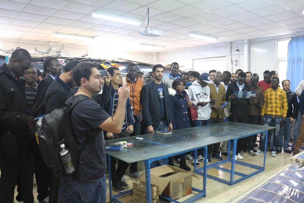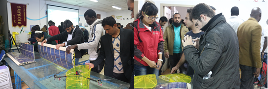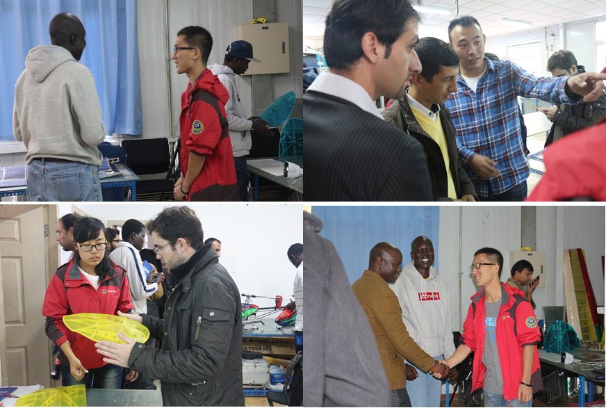 各国留学生参观了航空创新实践基地,认真观看了有关北航航模队近年来发展情况的影像资料,并针对各自感兴趣的飞行器、专用设备与航模队队员进行了广泛的交流。