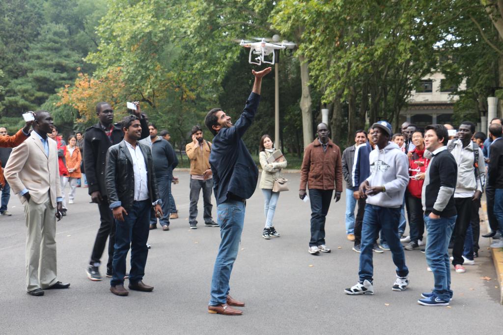 随后,北航航模队在主楼前进行了精彩的航模表演,展示了多旋翼稳定飞行以及空中航拍,获得了外国留学生阵阵热烈的鼓掌。