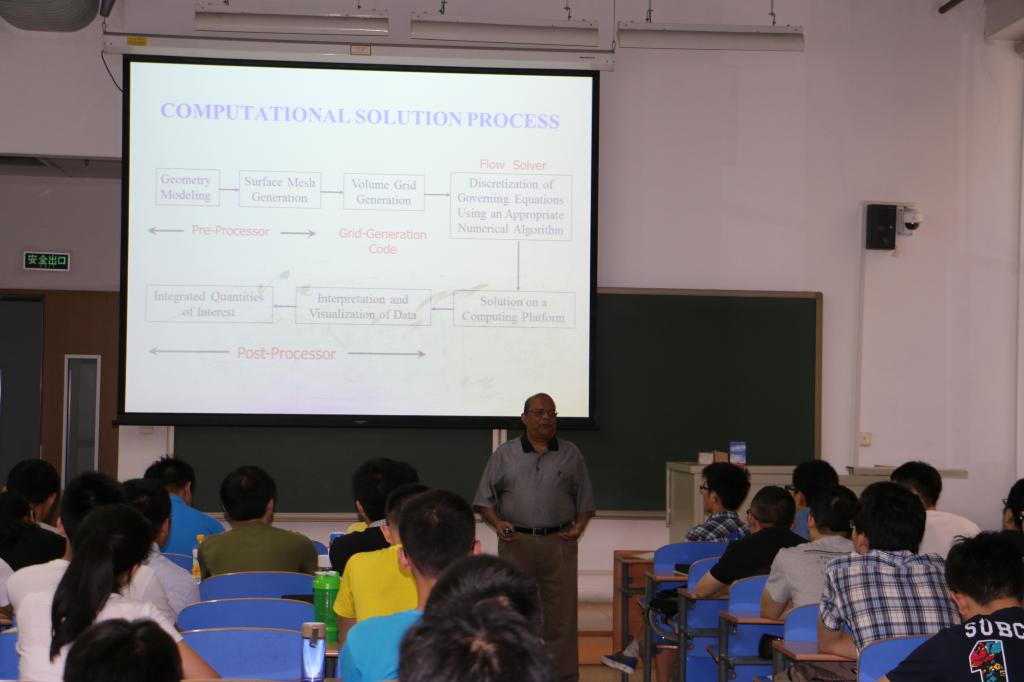 Agarwal教授此次访问我校期间,为航空学院研究生开设了为期一周的引智课程《计算流体力学》,课程内容丰富,涉及到计算流体力学的基础知识和各类工程应用。