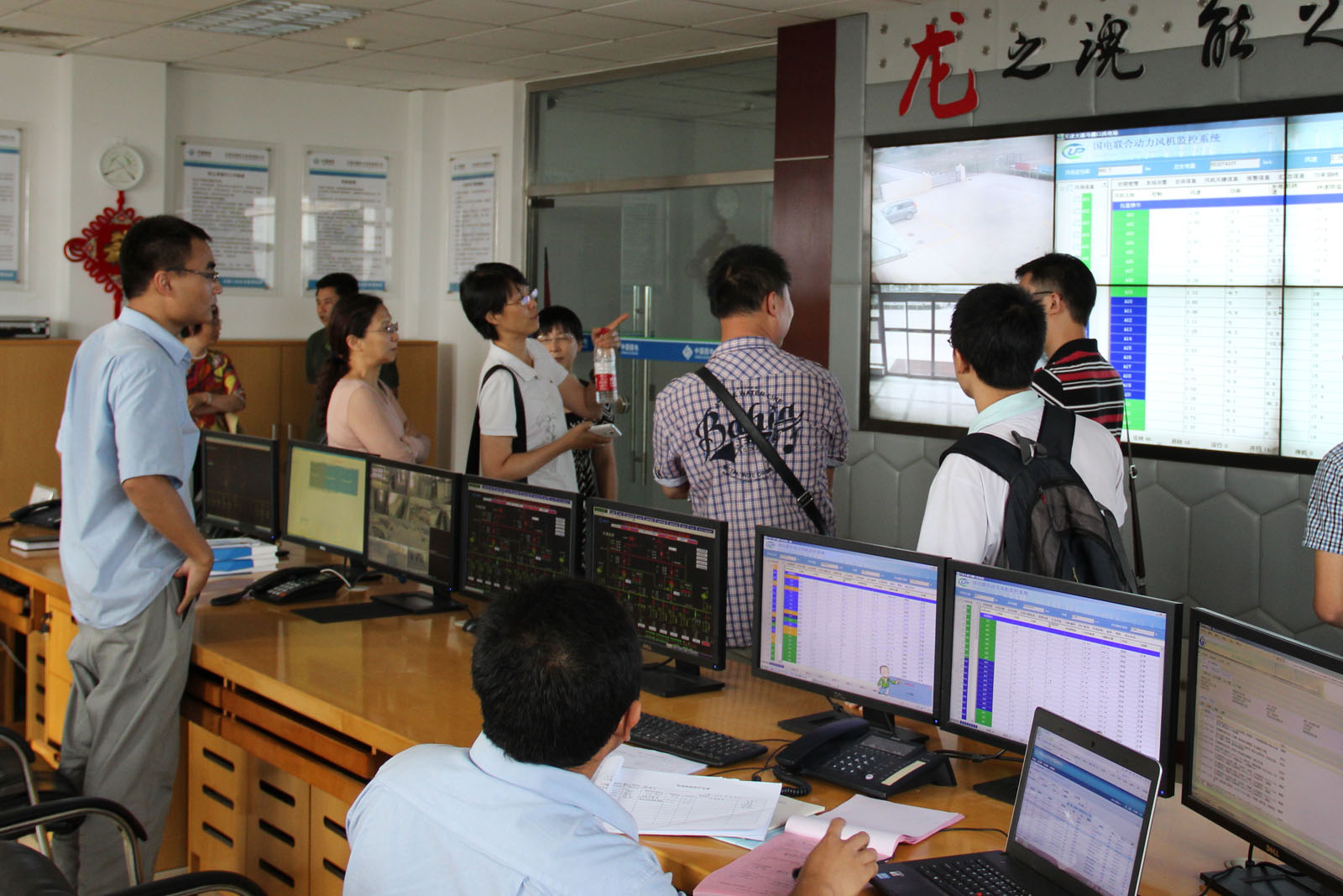 与天津龙源电力员工在马棚口风电场中心控制室交流