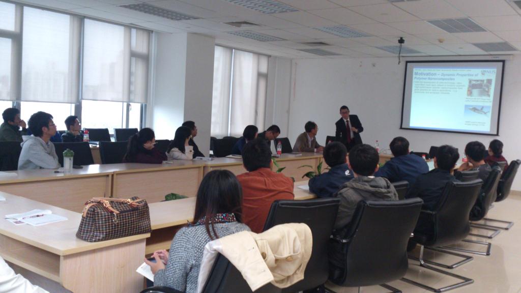 此次报告会致力于活跃我校的学术氛围、交流学术成果,提升国际化水平。整个报告会持续了两个小时,会上,Victor P.W. Shim教授就自己所研究的纳米结构复合材料的静力学、准静压以及冲击动力特性与到场老师和同学们进行了交流,饱含激情的讲解和生动的语言赢得了阵阵热烈的掌声。会后,来自我校和北京理工大学的多位专家与Victor P.W. Shim教授就感兴趣的问题进行了深入的探讨。此次宣讲会在相互学习与交流中获得圆满成功。