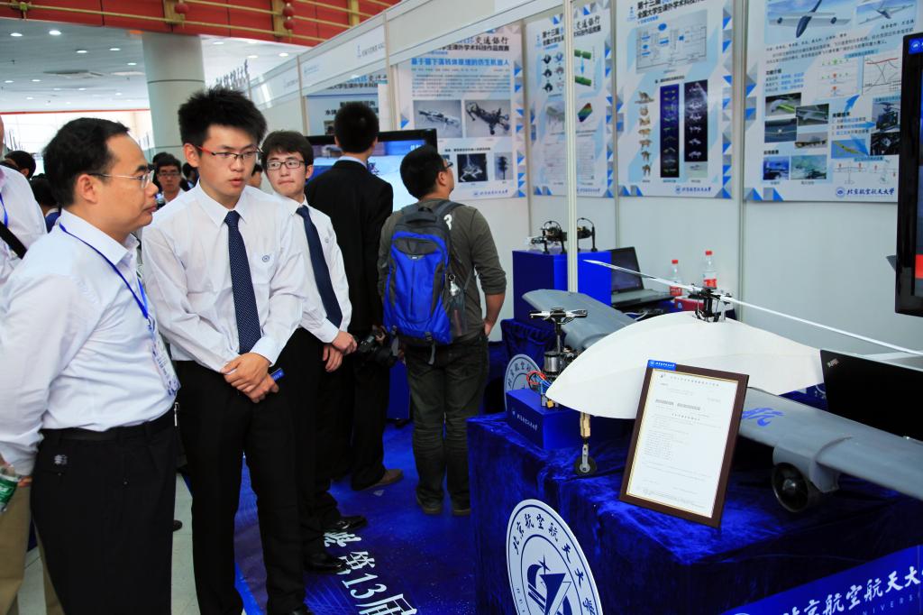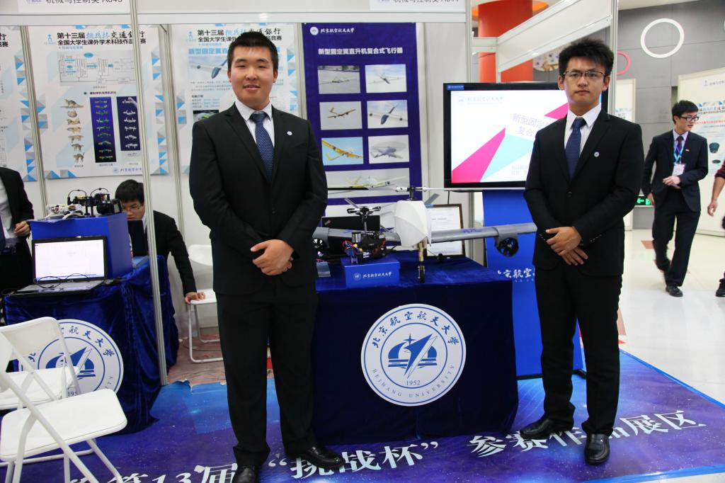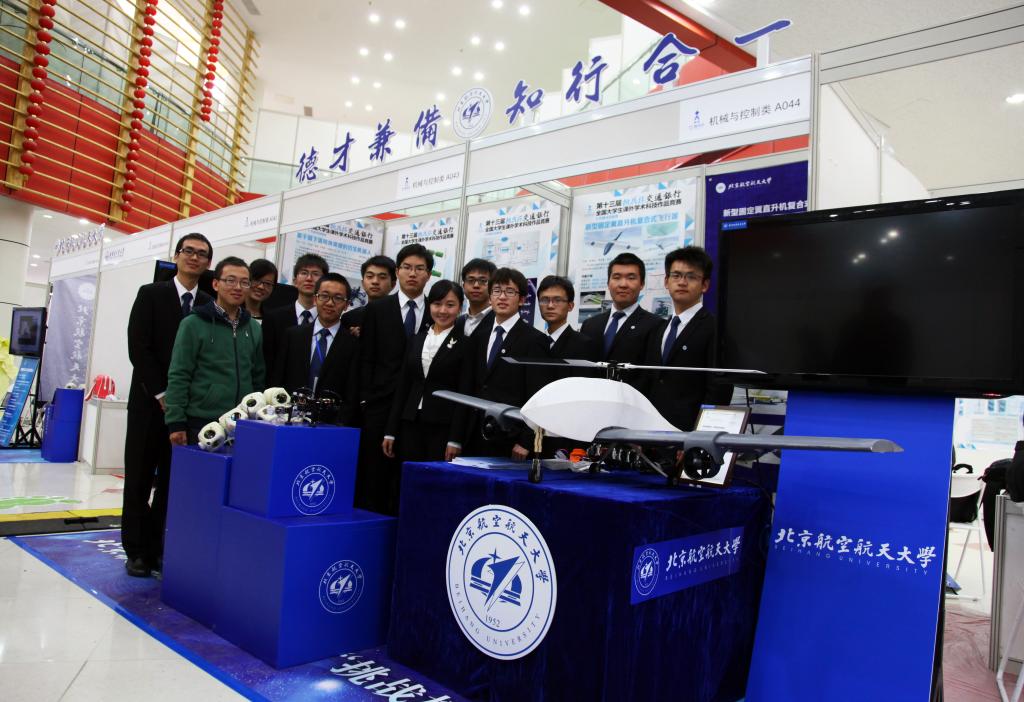 在机械与控制类竞赛中,365英国上市公司张啸迟、张良、章异嬴、石明轩、杨天浩等同学的参赛作品“新型固定翼直升机复合式飞行器”、以创新性的机翼布局与飞行原理赢得了评委们的认可,荣获竞赛一等奖。该项目来自于张啸迟同学的一个简单设想——如何才能让直升机飞得更快些,基于这该设想,团队从飞行原理分析、原型设计、样机制作、试飞调整等,直到最终试飞成功,经历了长达三年的科研攻关过程。在克服诸多困难的同时,也收获了诸多荣誉,先后获得首都“挑战杯”学生课外科技作品竞赛一等奖,北京航空航天大学“冯如杯”学生科技学术作品竞赛一等奖、二等奖,并参与国家大学生创新创业训练计划、北京航空航天大学本科生科研训练计划,获得项目资金支持。