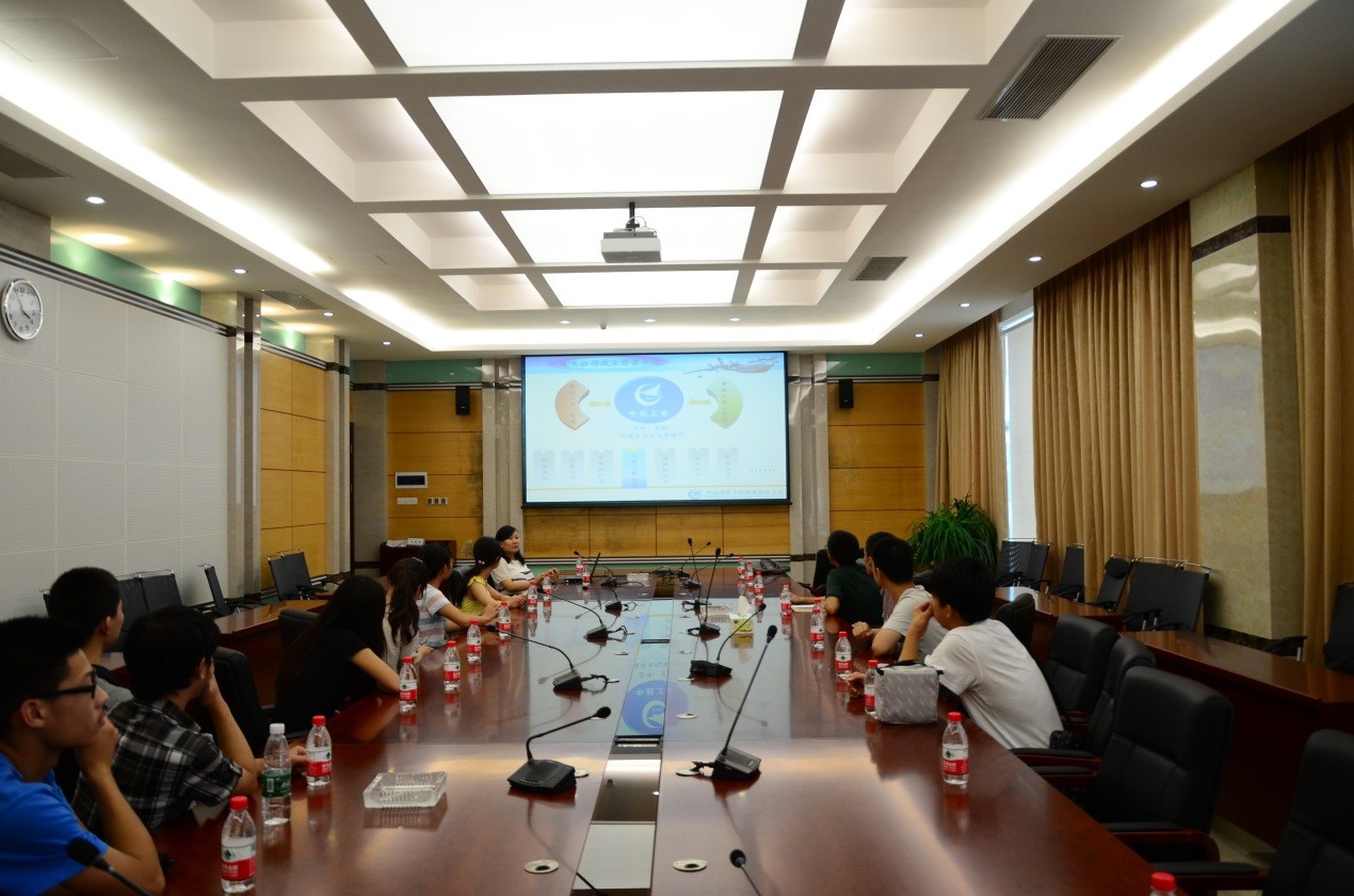 日下午,实践队队员登上火车,踏上了前往珠海的旅途。次日十时火车抵达广州,队员们不顾舟车劳顿,又马不停蹄的从广州前往珠海。虽然天气正值夏季,但是暑热并不能给实践队造成阻碍。怀揣着对通航领域的期待,大家到达珠海后第一时间就来到了中航通飞总部。在那里,人力资源部的齐老师为我们简单介绍了通飞公司的历史与现状以及中国的通用飞机产业带。大家通过出发前查阅的资料以及老师的讲解,对于通用飞机这一领域有了较为完善的了解,顺利完成了首日抵达珠海后的任务。
