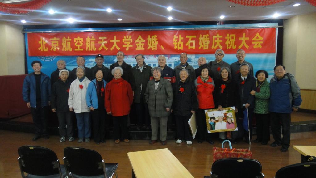 2012年11月21日上午,北航离退休老同志金婚、钻石婚庆祝大会在思源楼举行。今年,航空学院共有胡继忠等13对离退休老同志参加金婚、钻石婚庆祝大会。