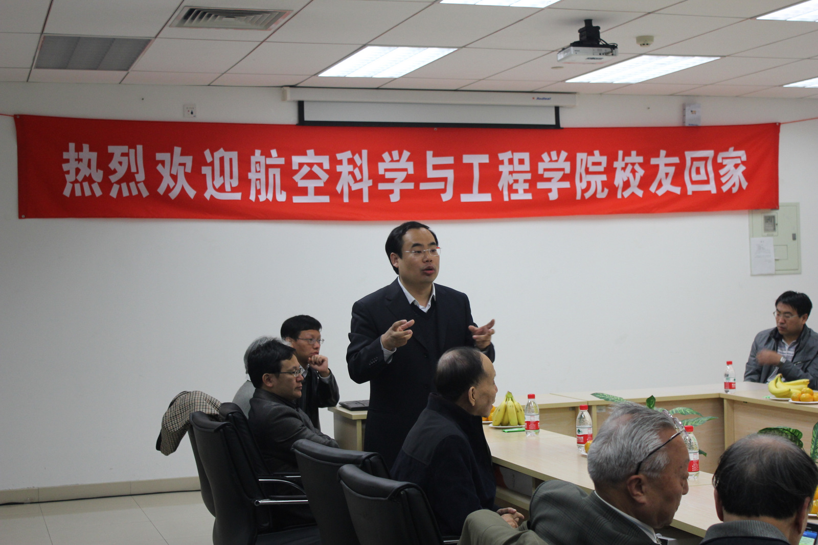 首先,王大成先生介绍了这次聚会的主要安排及活动内容。随后,程基伟副书记致辞,代表北航表达了对老校友回校探访的热烈欢迎,同时向62届的老校友们介绍了北航近10年发展光辉历程,以及北航60周年校庆各项纪念活动的具体安排,向在座的校友们发出了诚挚的邀请。航空学院赵小虎副院长回顾了近几年学院的发展历程,介绍了航空学院现行的院系设置、师资力量、人才培养等,对老校友的回访表示热烈欢迎。