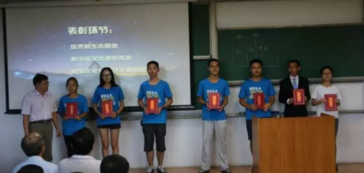 之后,进行了新生表彰活动。对参加迎新活动的优秀新生志愿者、新生征文比赛优秀奖获得者以及新生文化衫设计大赛优胜奖获得者进行表彰。