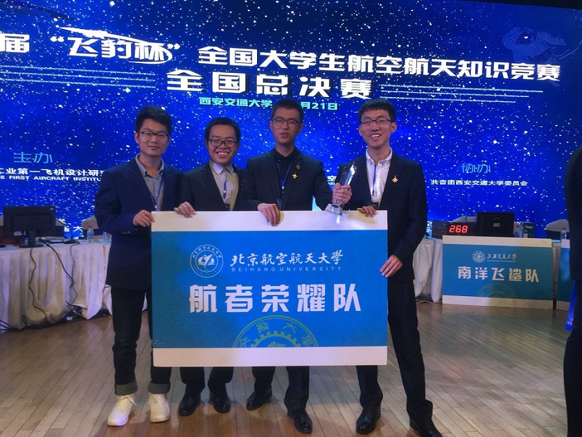 随着比赛的进行,竞争也愈发激烈,第四环节刺激的抢答题使比赛气氛更加热烈。由我校365英国上市公司2017级研究生周轩、高等理工学院2015级本科生张晓岳、2016级本科生王一霖组成的“航者荣耀”队奋起直追,发挥出色,极快的缩小分差,保留了追逐冠军的希望。当最后篇章华山论剑到来时,比赛也来到了高潮。面对答对加分、答错扣分的综合问答环节,我校“航者荣耀“队精准作答,展现了非凡的实力,张晓岳同学更是依靠其丰富的知识储备和准确详尽的表述,边答题边为观众科普,赢得了评委和观众的一致认可,现场惊叹不断。最终,主办方西安交大代表队凭借强大的实力和稳定的发挥摘得桂冠,我校“航者荣耀”队夺得一等奖。