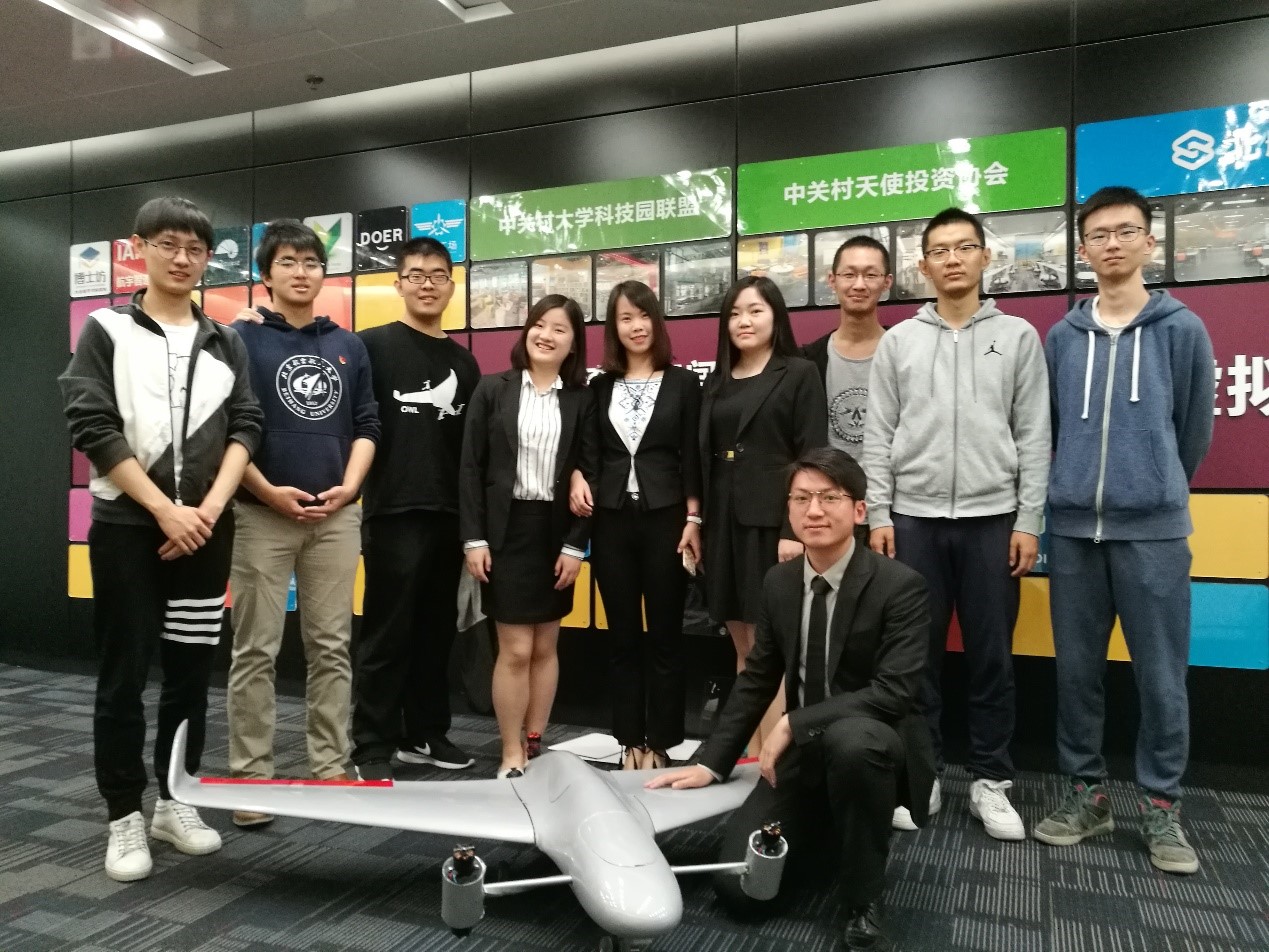 此外,团队依靠北航科技园联系校外无人机零部件公司,进行开模量产工作,目前可携带设备达到3-5kg,航时达到80分钟,航程达到144公里,已完成设计定型,受到航空航天领域多名院士、总师肯定,并引起多家业内公司、投资机构注意,受到CCTV、首都新闻网、北京日报相继报道,取得意向订单。