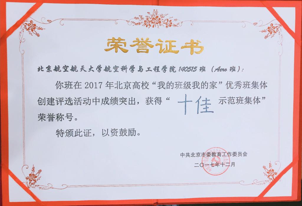 12月20日,由北京市委教育工委主办的2017年北京高校“我的班级我的家”优秀班集体创建评选活动决赛在北京工业大学举行,我院140515班从全市200多个参评班级中脱颖而出,获评北京高校“我的班级我的家”十佳示范班集体。