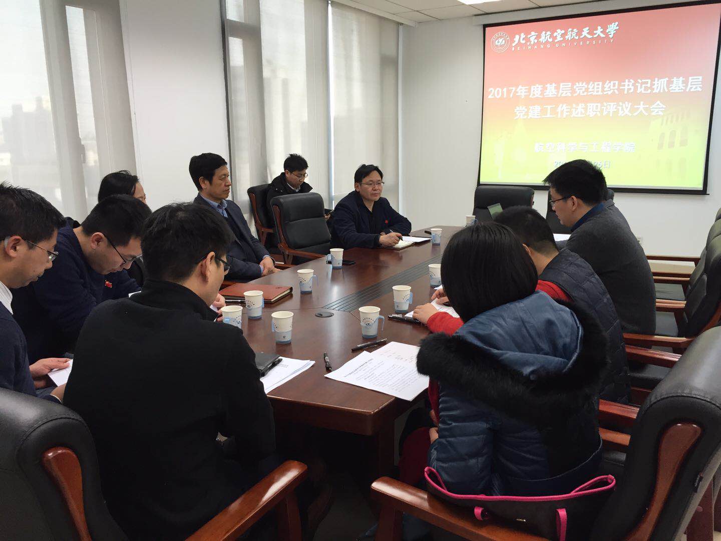 徐惠彬校长在认真听取了支部书记述职报告后,对学院党委2017年高质量的完成各项工作给予了充分的肯定,同时也对学院党委提出了希望和要求,希望学院党员领导干部能够率先垂范,攻坚克难,团结带领全院师生勠力同心、携手共进,努力建设成为世界一流航空学院。