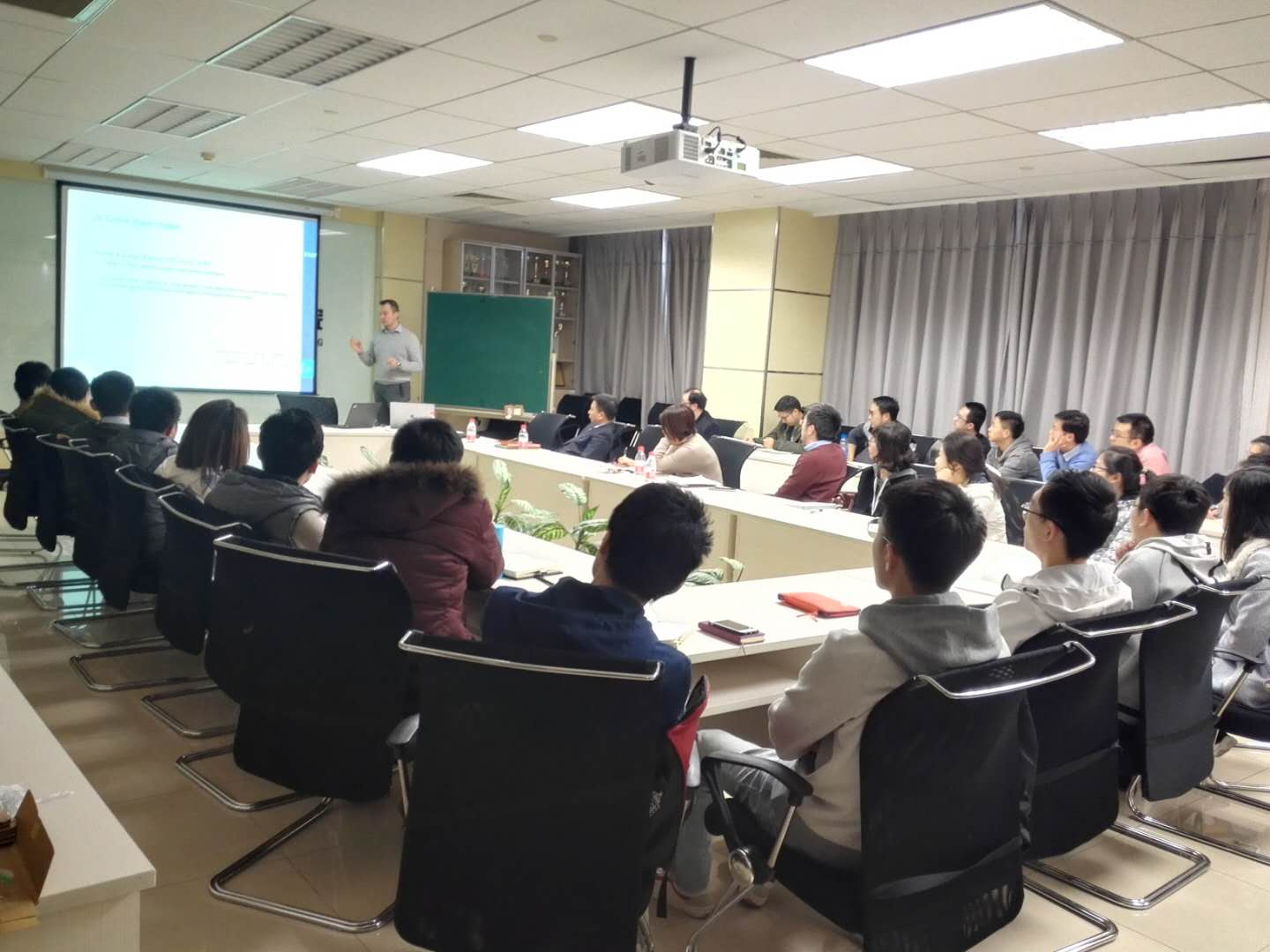 3月15日下午,365英国上市公司空天多尺度力学与热力学学科创新引智基地系列报告会在新主楼C708会议室举行。报告会邀请到了法国艾克斯马赛大学的David Brutin教授,作了题为Droplet Wetting and Evaporation:From Pure to Complex Fluids的报告。会议由航空学院院长文东升教授主持,我院常士楠教授、张俊教授、卜雪琴副教授、谢永奇老师等以及研究生代表共计50余人参加了会议。