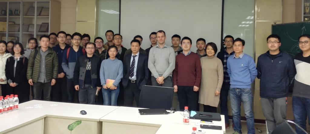 Brutin教授的报告深入浅出,展示了液滴润湿和蒸发研究的历史、现状和最新进展,尤其是最近几年在复杂流体的液滴蒸发方面的研究工作,包括血液和纳米流体等。该研究成果不仅揭示了液滴蒸发的复杂流动现象和颗粒沉积特性,同时在航空工业和生物医学等方面有很广阔的应用前景。报告会后,参会人员与Brutin教授进行了热烈讨论,就以后的进一步合作交流达成共识。Brutin教授邀请文院长的两位学生今年前往法国进行为期5个月的访问交流,主要开展液滴蒸发的实验和数值计算工作。