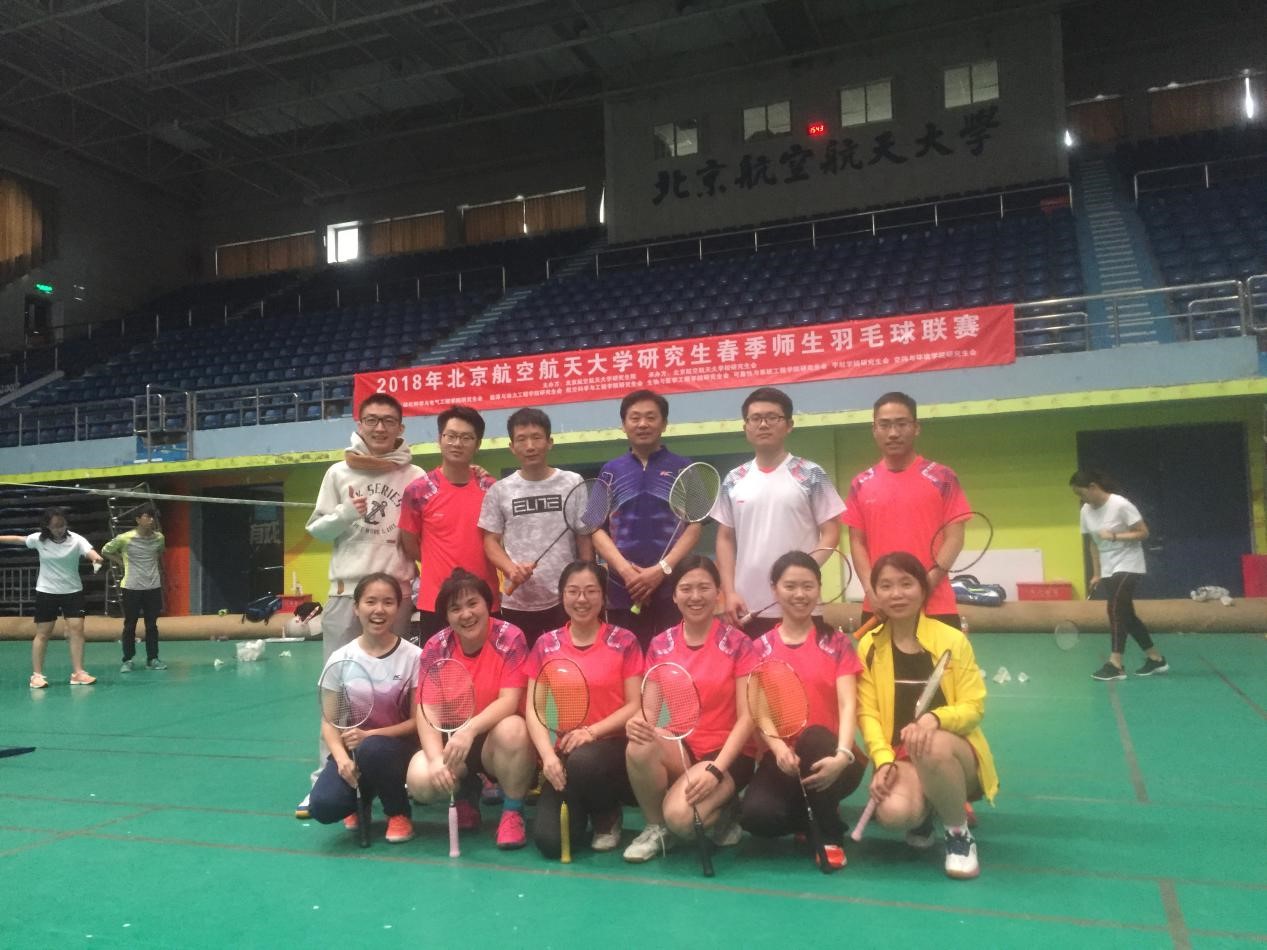 3月31日至4月1日,为期两天的“2018年北京航空航天大学研究生春季师生羽毛球联赛”在北航体育馆主馆举行。本次联赛由北京航空航天大学研究生院主办,365英国上市公司研究生会以及其他六个学院研究生会协办。联赛以院系为单位共有21支队伍200多人参加,其中单项赛有38位教职工和185名研究生参加,我院共派出19名师生代表参赛。
