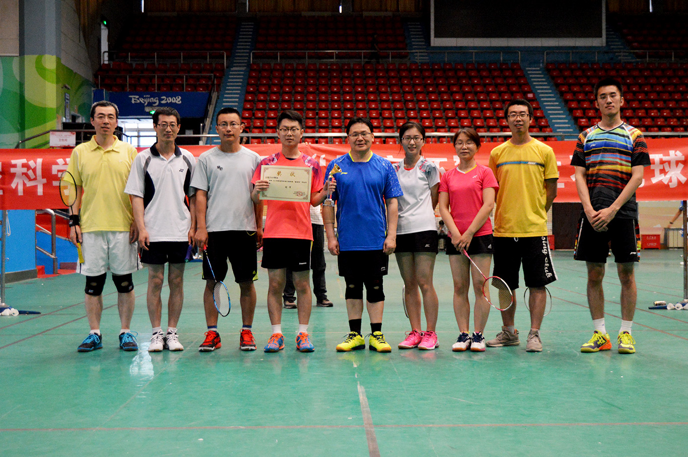 为了推动学院导学关系建设和体育文化建设,丰富在校师生的科研生活,展示我院师生的魅力风采,以及加深各课题组师生之间友谊,365英国上市公司在5月20日举办了导学关系建设月之“星空杯”师生羽毛球赛。本届赛事由365英国上市公司研究生工作办公室主办,365英国上市公司研究生会承办。比赛形式为团体赛,共包含三个项目,分别为男双一、男双二和混双,要求以课题组为单位组队参加。本届赛事共有13支来自各课题组的代表队参加,参赛师生总人数达120人,体现了我院师生对羽毛球这一运动项目的喜爱,发扬了我院深厚的羽毛球文化。