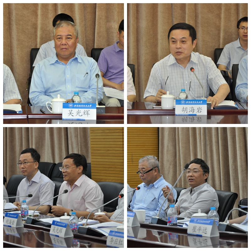会议成立了评估专家组,组长分别由北京理工大学胡海岩院士和中国商飞吴光辉院士担任,专家组成员包括:空军工程大学李应红院士、北京大学魏悦广院士、西北工业大学副校长张卫红教授、哈尔滨工业大学校长助理曹喜滨教授、北京理工大学崔平远教授、南京航空航天大学航空宇航学院院长夏品奇教授、机械科学研究总院副总经理单忠德研究员、清华大学吴子牛教授和北京交通大学汪越胜教授。北京航空航天大学副校长陶智教授、校长助理赵罡教授、无人系统研究院总设计师向锦武教授、航空学院院长文东升教授、分党委书记林贵平教授、能源与动力学院院长丁水汀教授、宇航学院院长杨立军教授、航空学院常务副院长鲍蕊教授及相关学院研究生教学副院长、研究生管理人员、指导教师代表等参加了会议。会议由航空学院分党委书记林贵平教授主持。