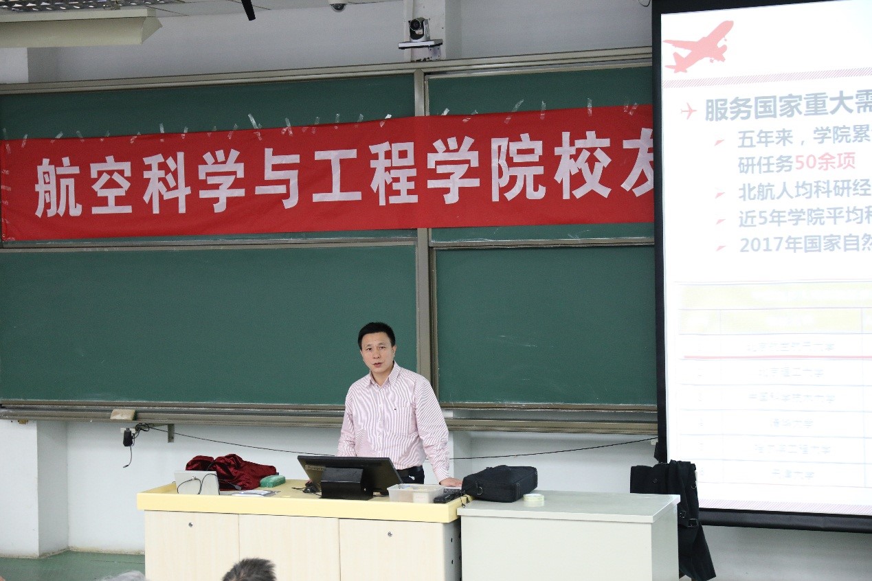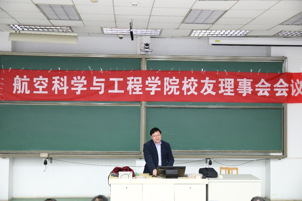 随后,学院校友理事会执行会长黄瑞勇历数了航空学院在政、商、学等各界发展的优秀校友,肯定了五系人的优秀品质和光荣传统。他指出航空学院的校友土壤十分广沃,校友工作的发展空间还很大,学院需要一个坚强而有力的校友会来将世界各地的校友组织起来,以“北航帮北航人,北航人帮北航,北航人帮北航人”的理念为核心,共同发展,共襄美好未来。