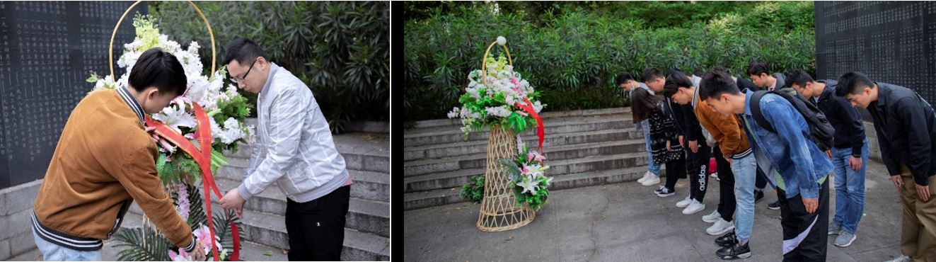 学习队伍首先来到了位于紫金山北麓的抗日航空烈士纪念馆,孙中山先生亲笔书写的“航空救国”四个大字赫然矗立在碑亭中。拾级而上,来到了镌刻着4296名抗日航空烈士英名的纪念碑林,在一众烈士名单中,大家找到了一个特殊的名字——梁慷荣,他是我院著名流体力学专家、中国工程院院士李椿萱的父亲,牺牲时年仅23岁,据李院士自述“来到人间的第一声啼哭与日寇飞机的吼叫和炸弹的爆炸声混杂在一起,已躺在烈士墓里的生父却已看不到他的这个儿子了”。辅导员们怀着沉重的心情集体为梁慷荣烈士献上花篮,庄重地鞠躬默哀,致以航空后辈的敬仰之情。时间回溯到82年前,抗日战争爆发,中华大地硝烟弥漫,为响应孙中山“航空救国”的号召,中国第一批飞行员在浙江笕桥中央航空学院诞生,梁慷荣就是其中一员,毕业即怀抱驱逐外敌保家卫国的坚定信念投身沙场,后担任空军中尉、空军分队长。1939年,梁慷荣烈士在战斗中为国捐躯。四十年后,李椿萱院士克服重重阻拦从海外归国,子承父业,在航空领域开创了一片新天地,攻克了一个又一个重大项目,培养了一批又一批航空英才。航空报国、一脉相承!