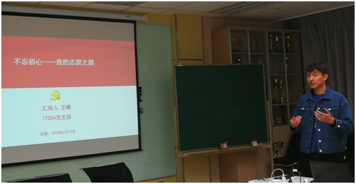 3月19日,航空学院硕士17054党支部在C708举行了以“不忘初心、牢记使命”为主题的十九大报告学习心得分享会。这次分享会以小组为单位,其他党员同志点评的形式进行。党支部分为四个学习小组,各小组分别就文化建设、三农政策等方面展开分享,内容丰富,形式多样。