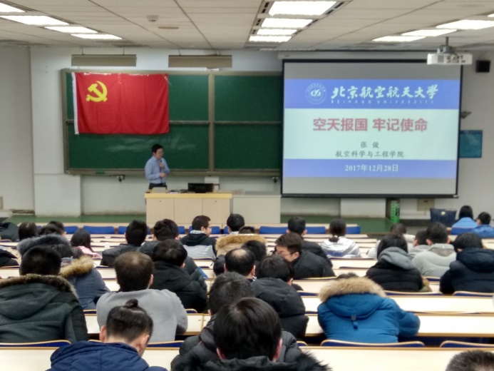 为深入学习宣传贯彻党的十九大精神,航空学院于12月28日晚在主M101教室召开了学习十九大精神系列宣讲活动。北航学习贯彻党的十九大精神研究生宣讲团成员、仪器科学与光电工程学院丁铭教授和航空学院院长助理、张俊教授分别宣讲,航空学院200余名学生党员参加了宣讲活动。