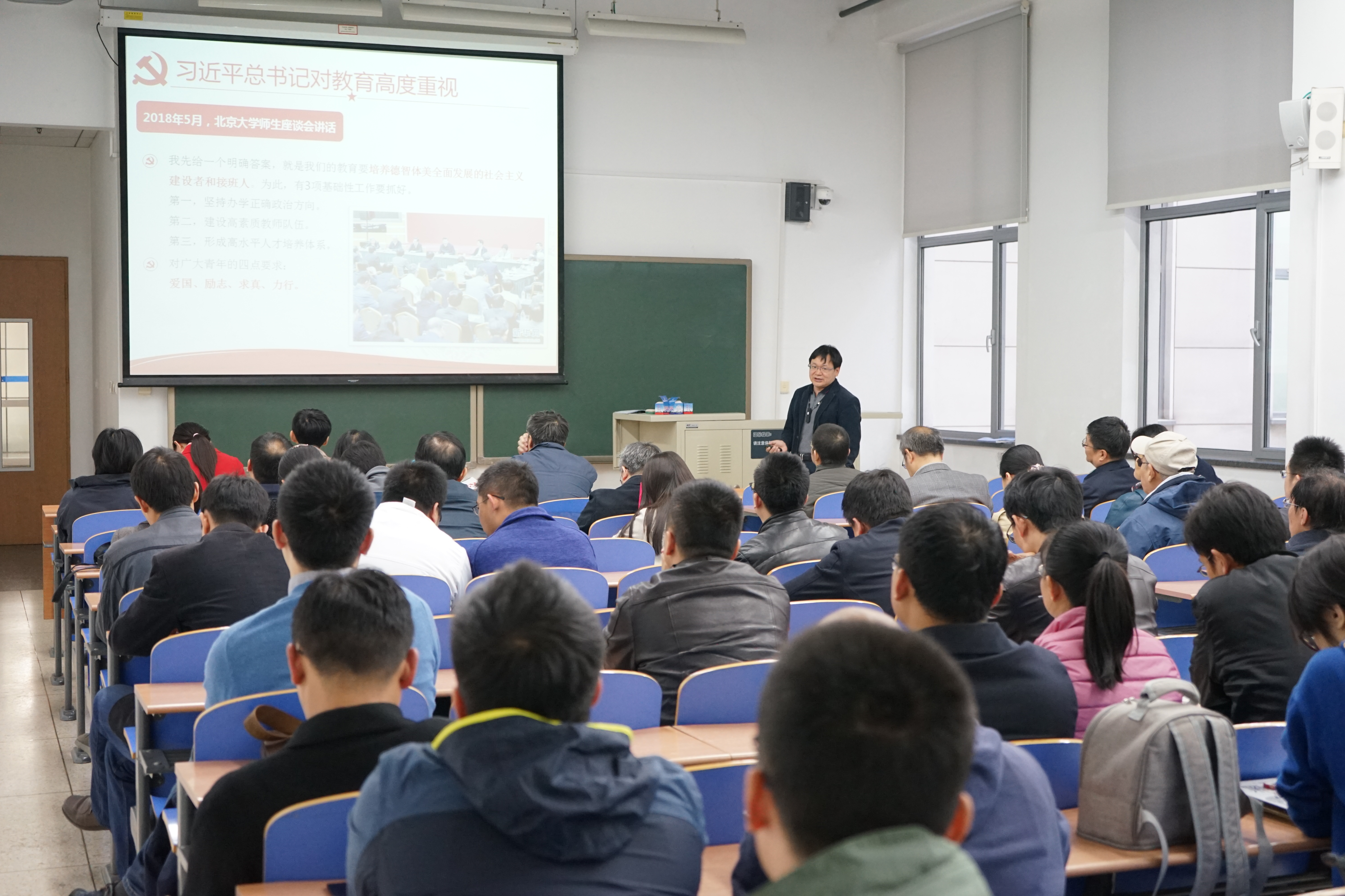 为切实贯彻《中共北京航空航天大学委员会关于认真学习贯彻全国教育大会精神的通知》的要求,深刻学习领会、坚决贯彻落实习近平总书记在全国教育大会上的重要讲话精神,10月24日下午,365英国上市公司党委在新主楼B102召开教师党员党课,专题学习全国教育大会精神。会议由学院党委书记林贵平同志主持,全体教师党员参加会议。